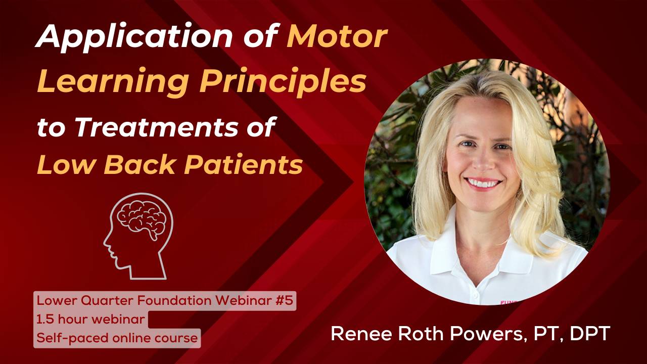 This is the final webinar of the five Lower Quarter Foundation Webinars in 2025. This webinar will describe the incorporation of motor learning principles into the treatment of patients with lumbar movement diagnoses. The purpose of teaching motor learning principles is to give physical therapists research-supported tools to affect long-term modification of provocative every-day movement patterns that are presumed to cause symptoms. The motor learning guidelines presented will provide a framework for constructing practice, feedback and the solving of motor challenges with the goal of long-term modification of movement skills. Case examples of patients with lumbar movement diagnoses will illustrate a step-by-step progression through the motor learning process for teaching patients how to modify provocative movement patterns, how to incorporate those modifications into daily life, and to facilitate the patient’s ability to independently apply that awareness to novel situations and tasks.