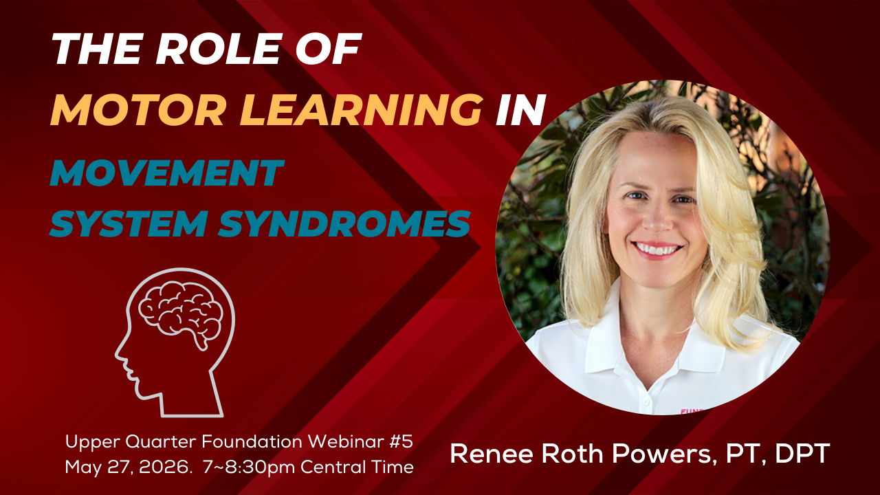 The 2026 Foundation Webinar Series will cover the key principles of the kinesiopathologic model, as they apply to upper extremity syndromes.
